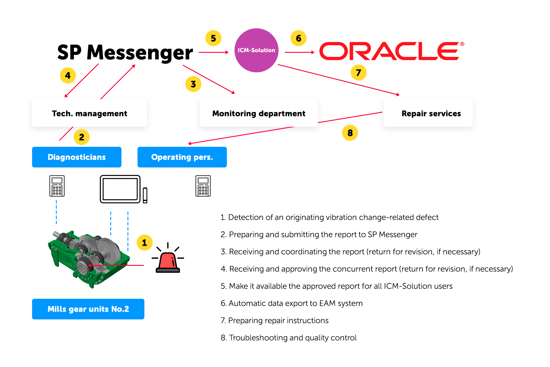 practical experience in the integrated use of the ICM-Solution platform confirms the effectiveness of the approaches used to improve equipment reliability and productivity, reduce unplanned downtime and accidents, reduce equipment maintenance and repair costs, increase haul and repair time, optimize the spare part storage, etc.